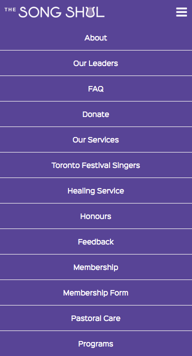 I am the interactive designer for The Song Shul, a synagogue in Toronto, Canada that opened in 2016. I designed their website and created their logo and brand identity, and I perform all their web maintenance and craft email newsletters.